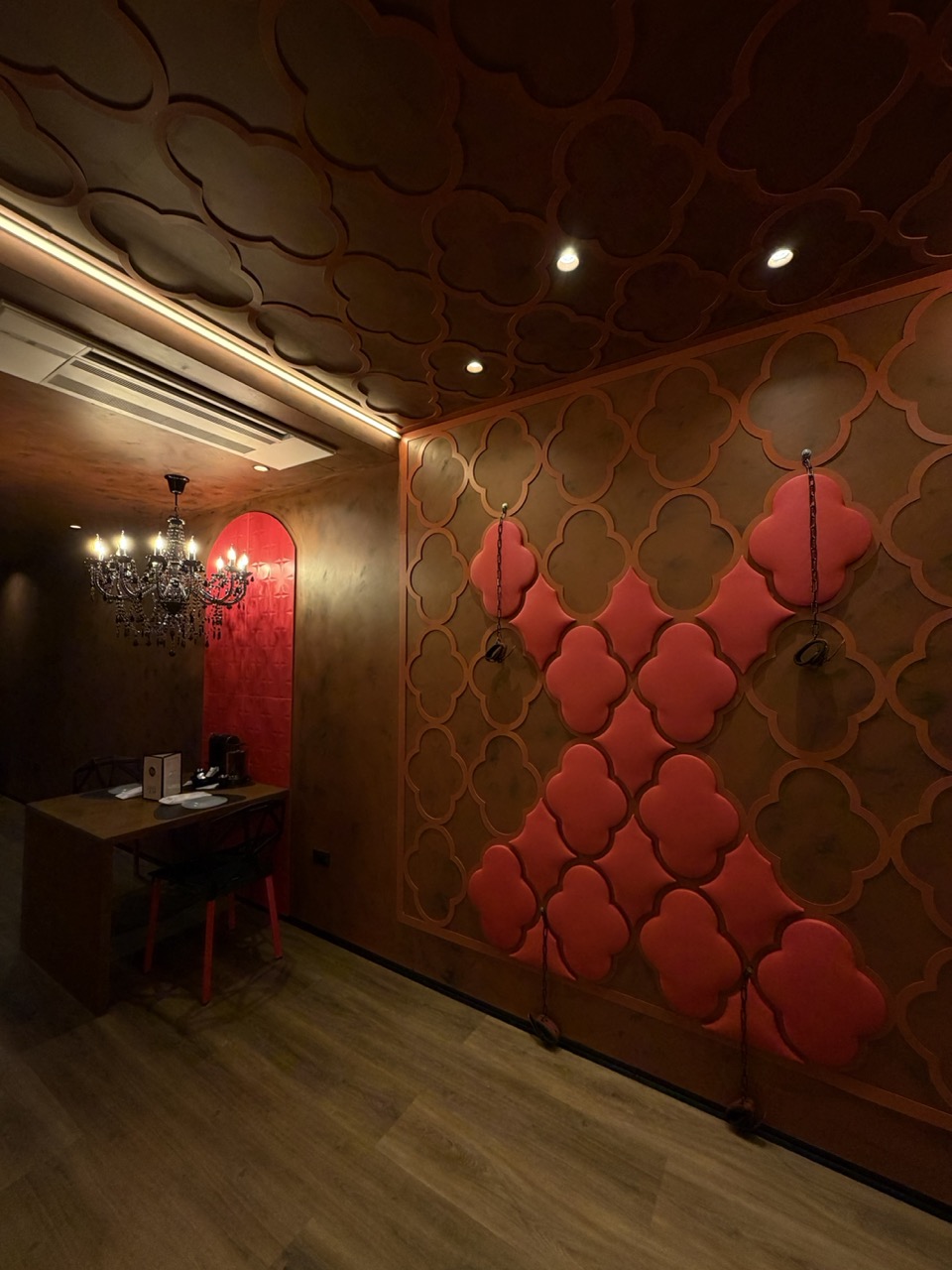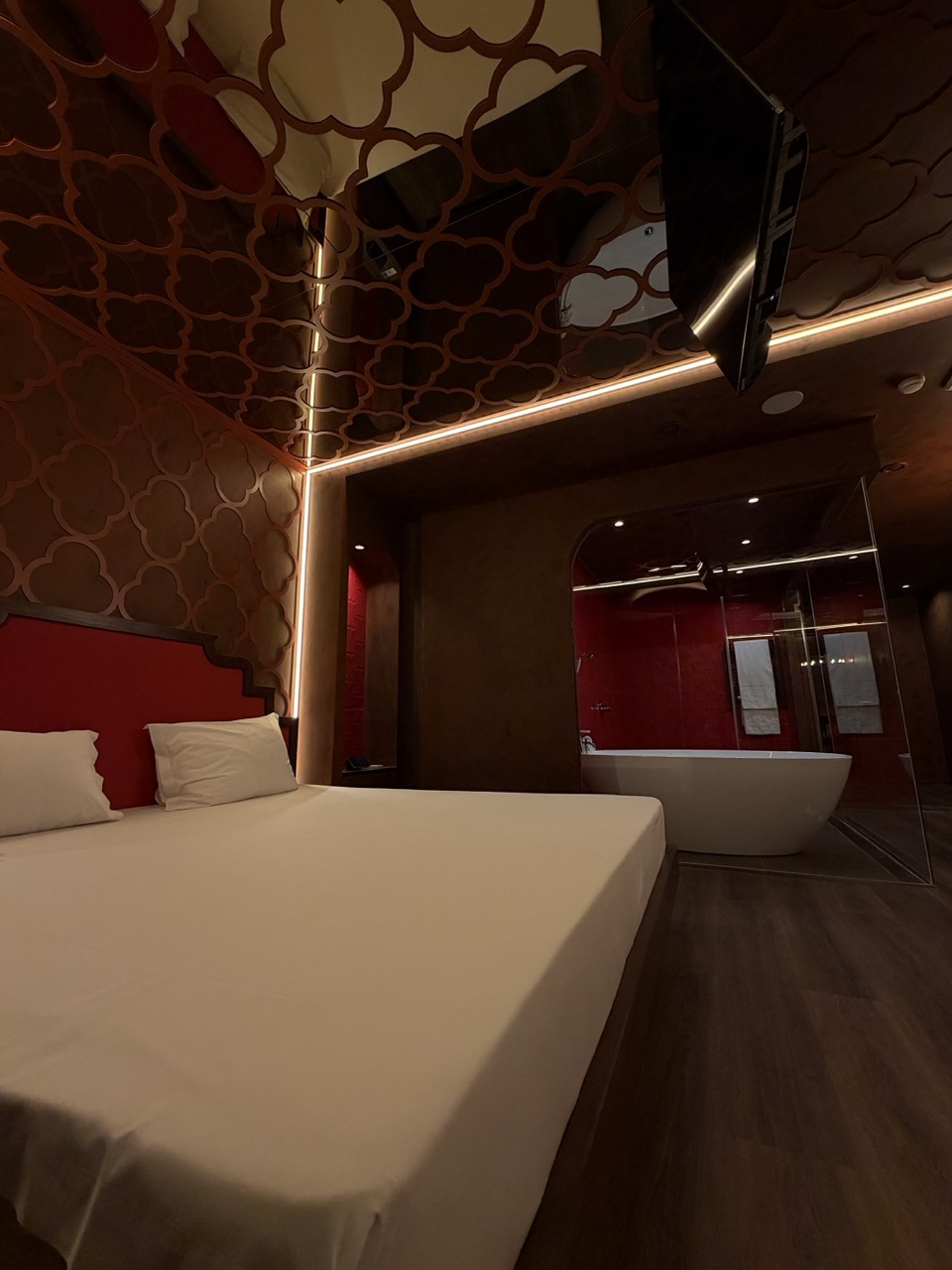 O ambiente destaca-se pelo design elegante e intimista, onde a iluminação ajustável através do comando de luzes permite criar diferentes atmosferas, adaptando o espaço ao ritmo de cada momento. Cada detalhe contribui para uma experiência personalizada, onde o conforto e o desejo coexistem em perfeita harmonia.