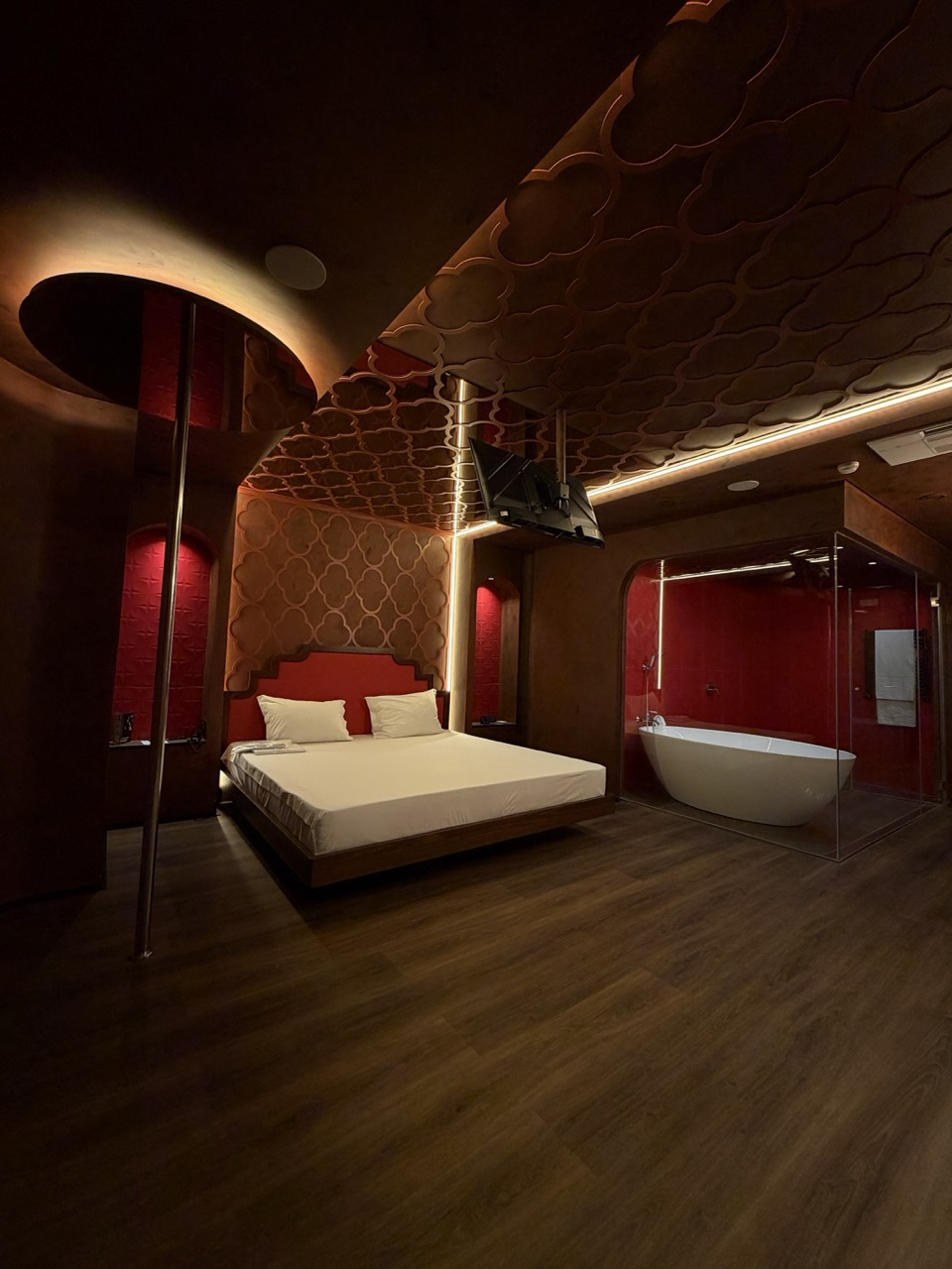 A Suite Obsession foi concebida para quem procura uma experiência intensa, sofisticada e absolutamente memorável. Com uma atmosfera envolvente e detalhes cuidadosamente pensados, esta suíte combina conforto, sensualidade e exclusividade, criando o cenário perfeito para momentos a dois.